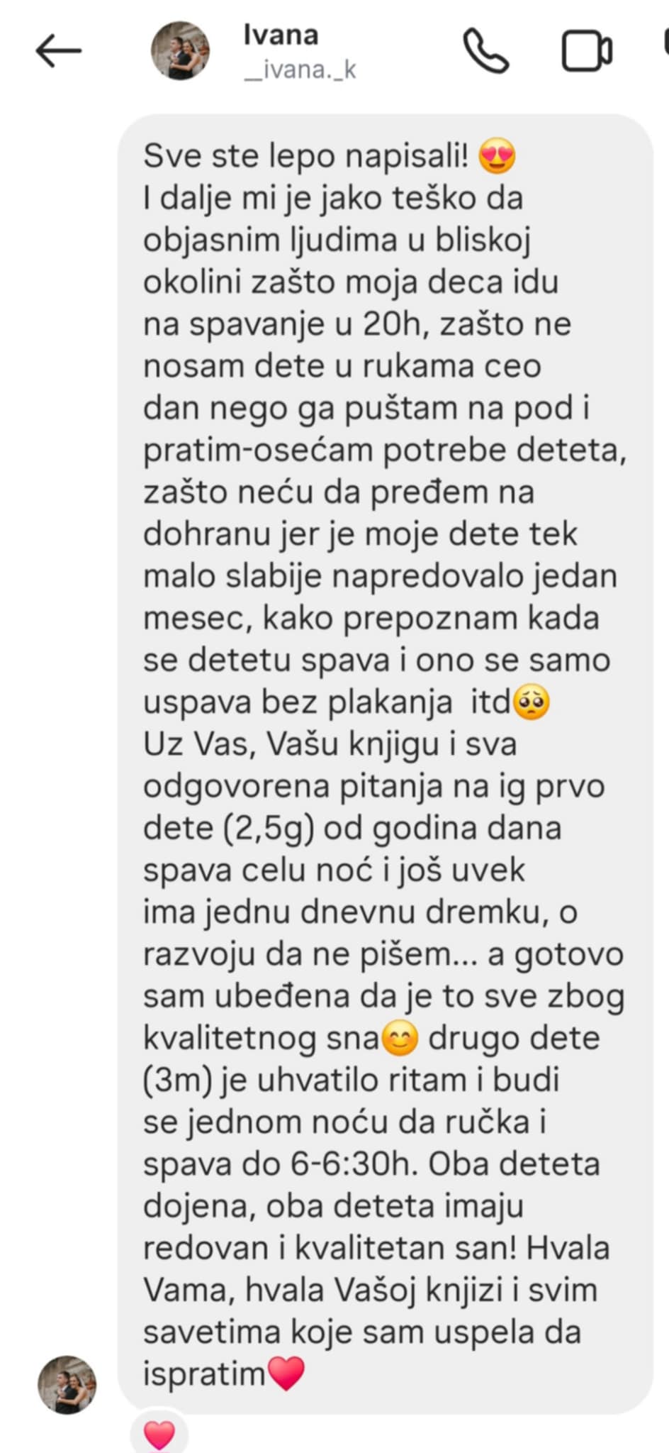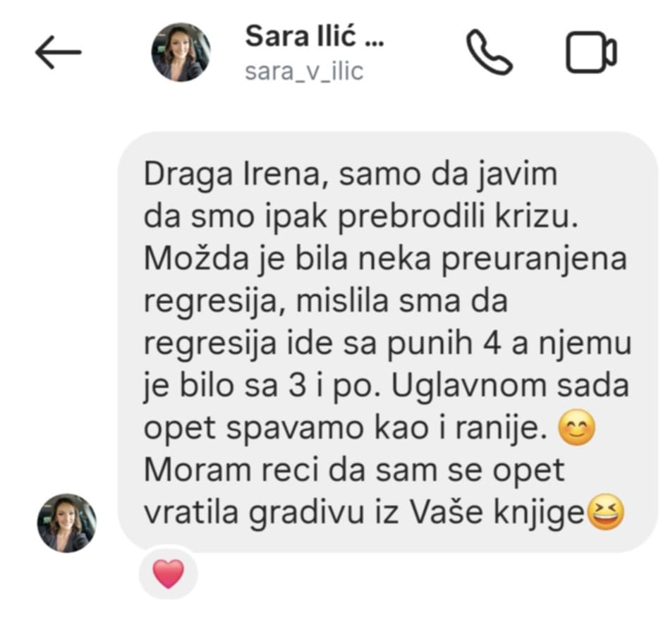 “Knjiga je pisana sa toliko razumevanja, topline, pažnje i nežnosti…kao da me je neka bliska žena držala za ruku dok sam čitala. Kao da me je bodrila i govorila da mogu da verujem sebi i svom detetu. Knjiga me je podsetila da nisam sama i da će sve biti u redu.”