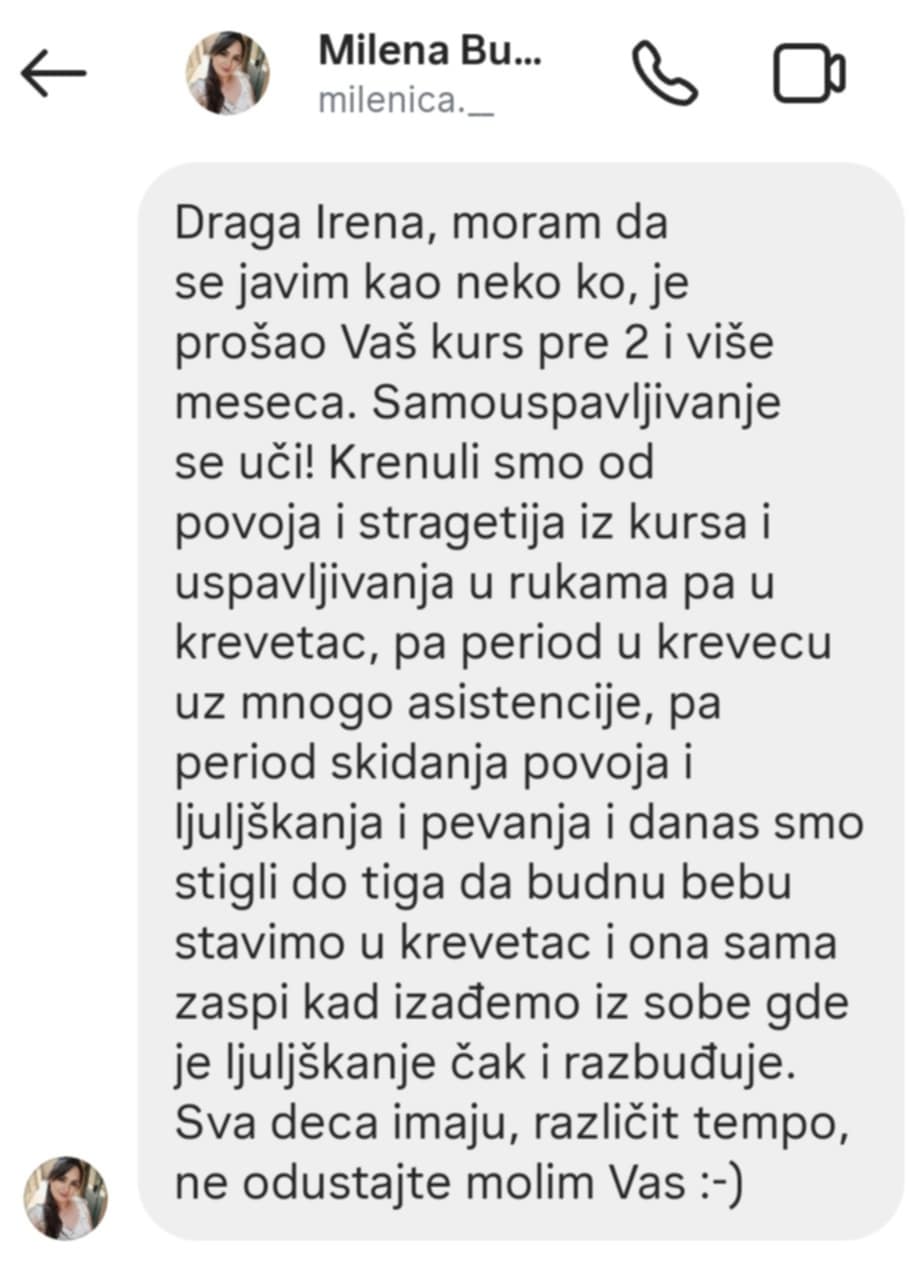 Ako želite da vaša beba nauči da zaspi mirno i samostalno, bez forsiranja i plakanja – ovaj kurs vam pokazuje kako, korak po korak.