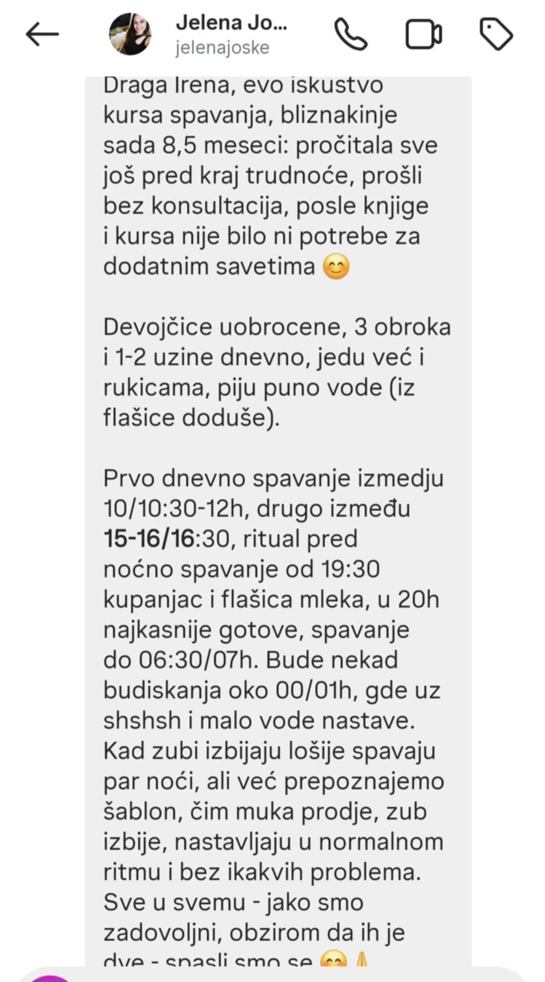 📞 Dostupno putem: • Telefonskog razgovora (do 15 min) • Zoom video poziva (do 45 min) • Poruka na Facebook stranici Zdrava beba – Irena Marković(do 60 min)